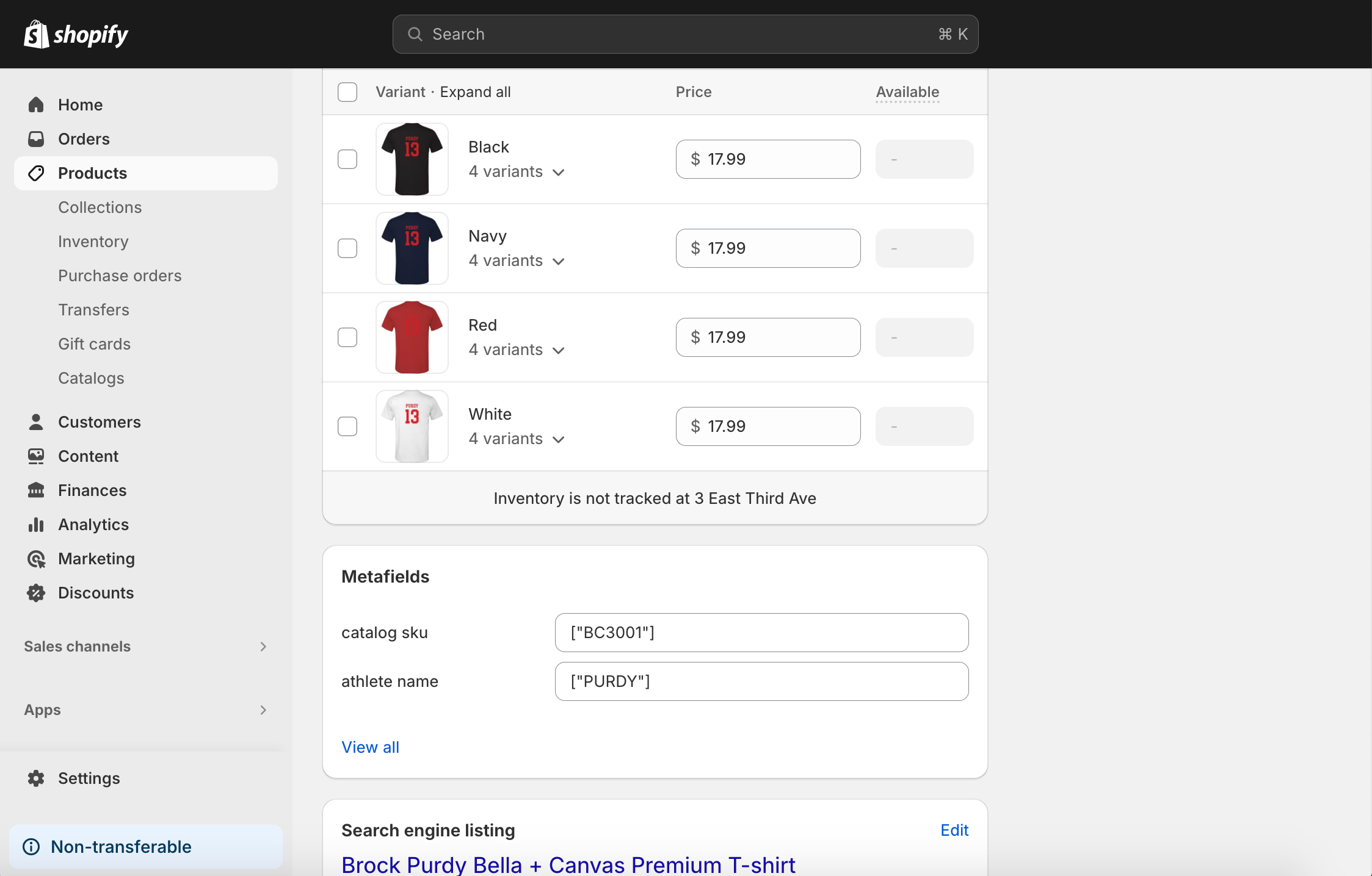 Finally, select Products from the Shopify Admin, find your product and scroll down to view the custom metafields and data.