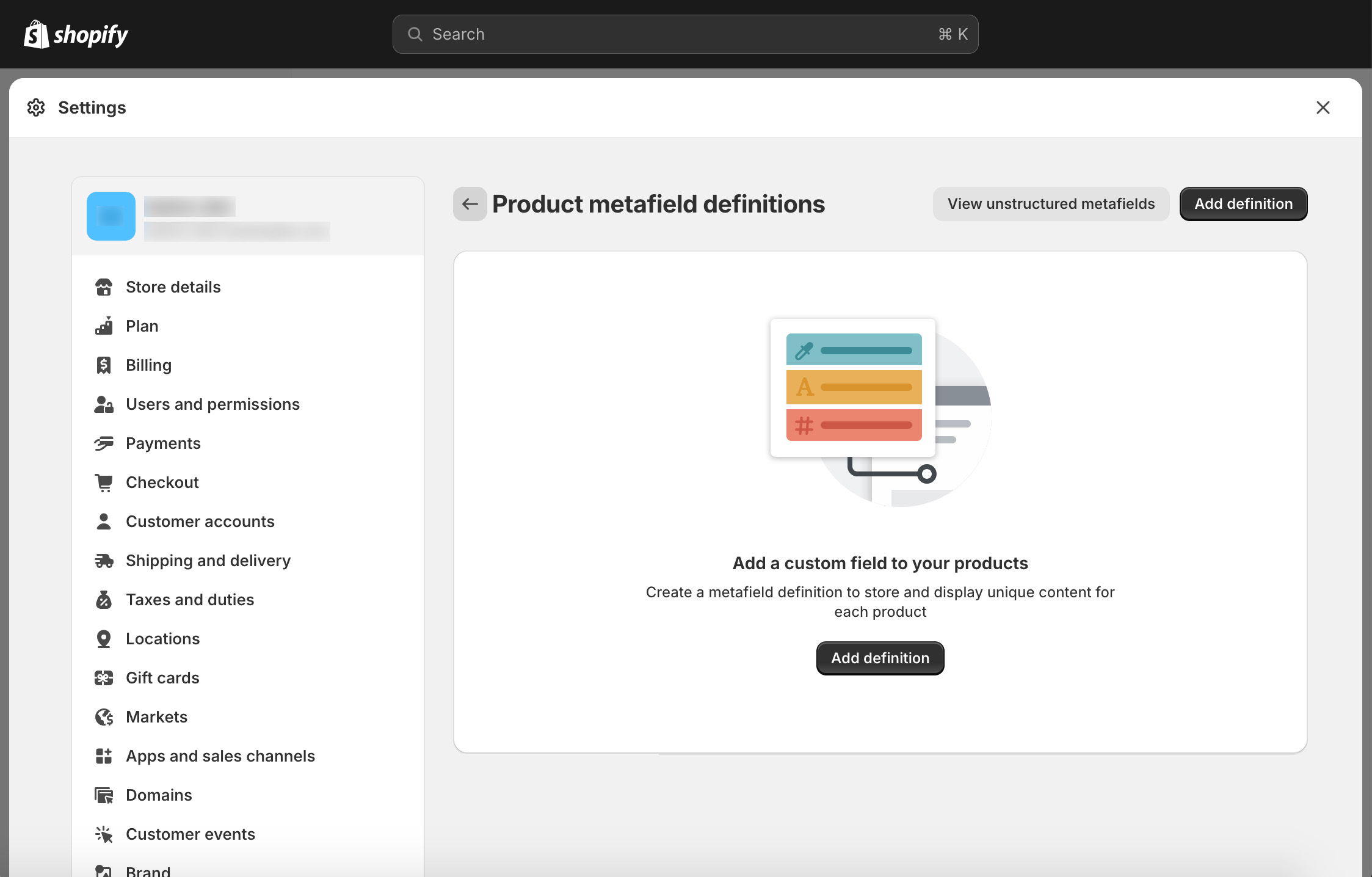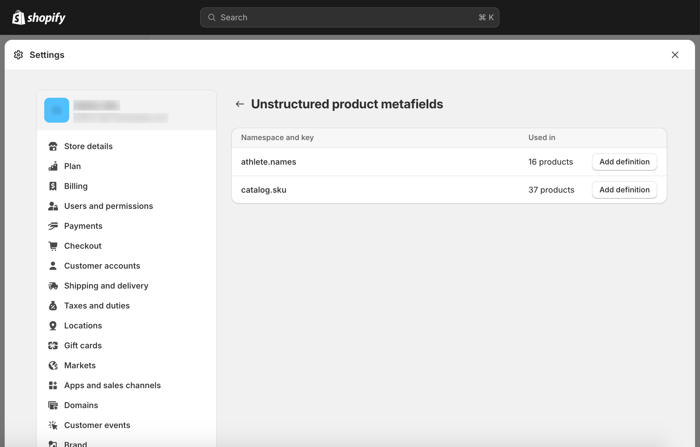 Save the definition. Repeat the Add Definition procedure for any remaining unstructured metafields in the list.