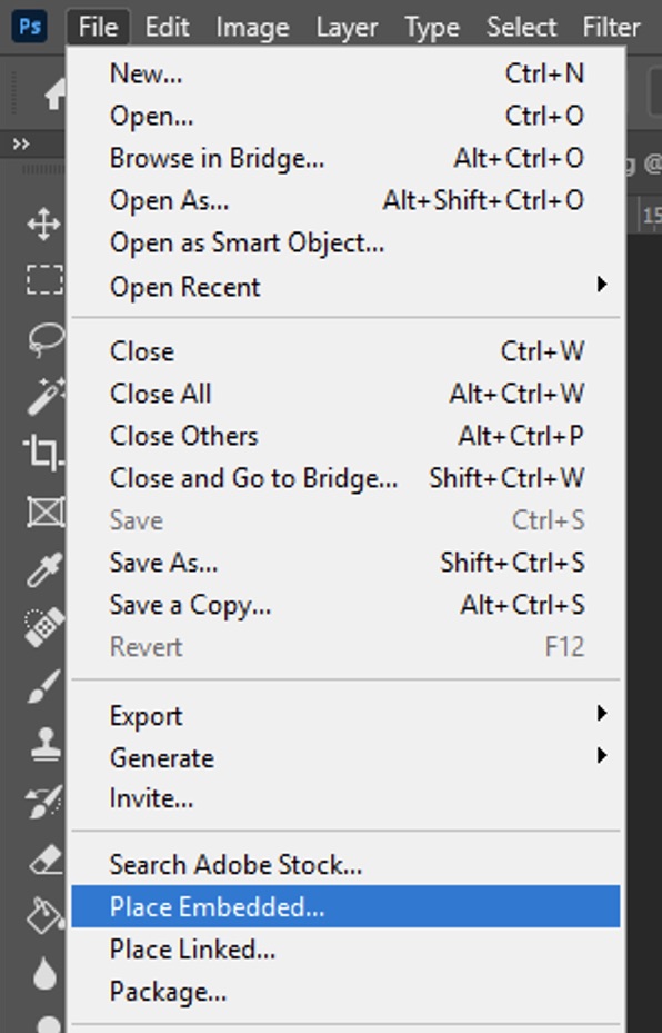 Next, from the File menu, choose the Place Embedded and select the printTemplate placeholder file that you made earlier. Press the Enter key to place the file as a smart object.